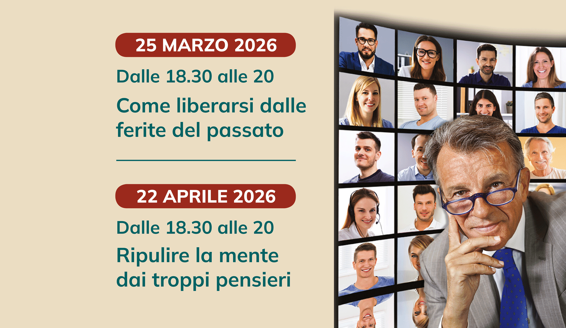 Eventi Incontri con Raffaele Morelli - 25 marzo e 22 aprile 2026 Autore: Raffaele MorelliData: 25 marzo e 22 aprile 2026Luogo: Online € 100,00 € 130,00-23 %