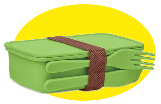 Per una pausa organizzata, il pratico porta pranzo con le posate incluse!